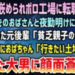 【感動する話】転職先のボロ工場で弁当をくれたおばちゃん。ある夜勤明け、俺を嵌めた元後輩と遭遇「貧乏親子の休日かよw」→見下す彼におばちゃん「行きたい土地はある?」現れた大男をみて顔面蒼白…【スカッと】