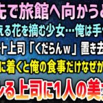 【感動する話】出張先で旅館への道中、お墓に備える花を摘む少女を手伝うことに…エリート上司「くだらんw」置き去りにされた→必死に宿に着くと俺の飯だけ豪華…ブチギレる上司…すると一人の美女が…【泣ける話】