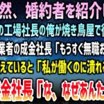 【感動する話】倒産寸前の工場社長の俺に娘が婚約者を紹介したいと焼き鳥屋で待っていると同業者の成金社長と遭遇「もうすぐ無職おめでとうw」→婚約者「私が働く会社が潰れると?」社長「…な、なぜ」【スカッと】