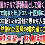 【感動する話】離島の高級ホテルで清掃員をする俺。新婚旅行で訪れた年下エリート医師「ゴミ拾い?滑稽で愚かな人生w」→翌日、突然医師の婚約者が倒れ立ち竦む彼…女将の一言に俺の手の震えが止まり…【泣ける話】